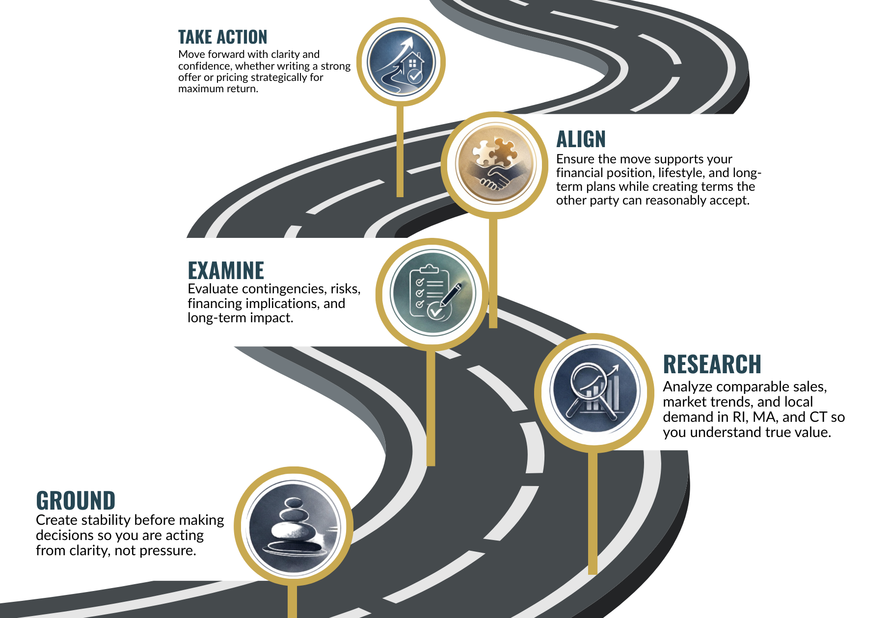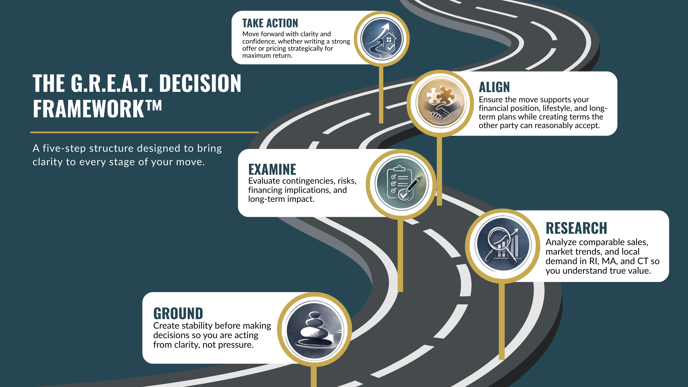 The G.R.E.A.T. Decision Framework™ helps buyers and sellers in RI, MA, and CT move forward with clarity, strategy, and confidence.